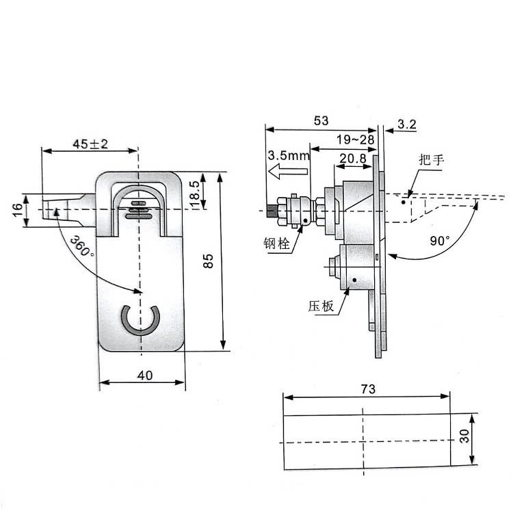 Cabinet lock MS726-1 plane lock distribution box electrical cabinet door lock adjustable compression