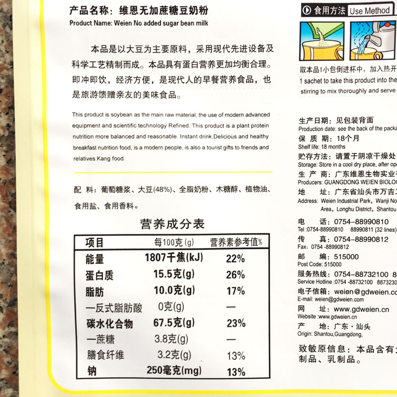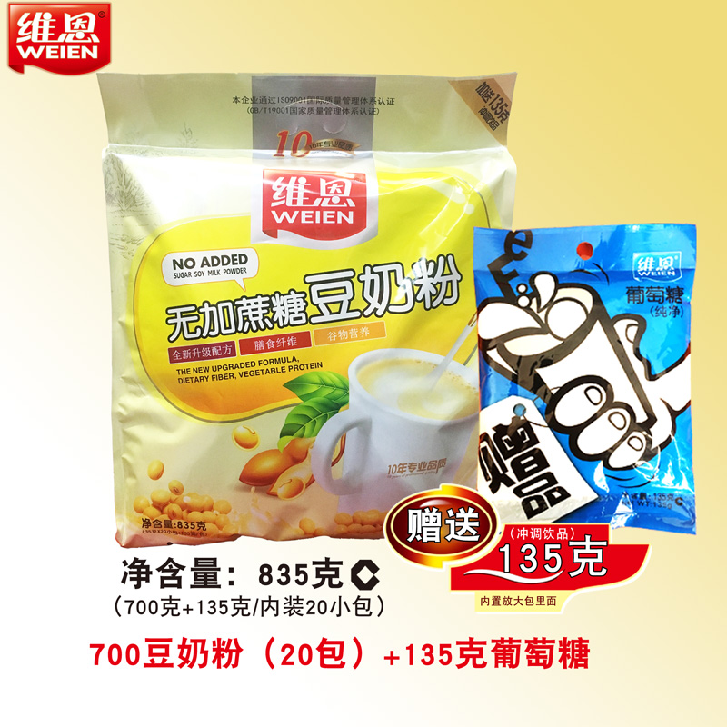 Wayne 835g soy milk powder no added sucrose small bag package breakfast instant nutrition brewing drink ready-to-eat breakfast