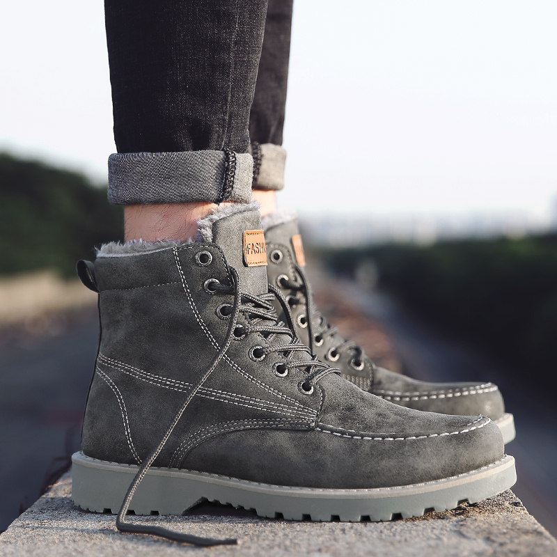 Martin boots male midcylinder spring plus suede thickened warm cotton shoes trendy Inron high cylinder men snowy tooling boots