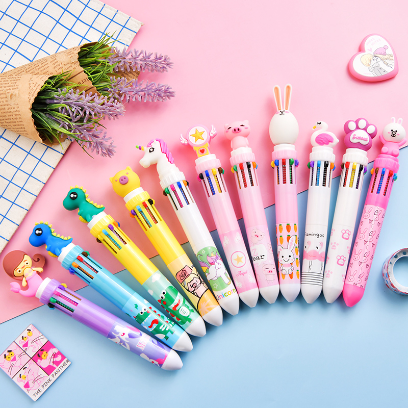 Tiger Crown Multi-color Ballpoint Pen 10 Color Press Type Press Ten Color Atomic Pen A Multi-colorEd One Cute Girl Creative Two-Color Pen Unicorn Four-Color Hand Account Special Pen Stationery Rainbow Pen