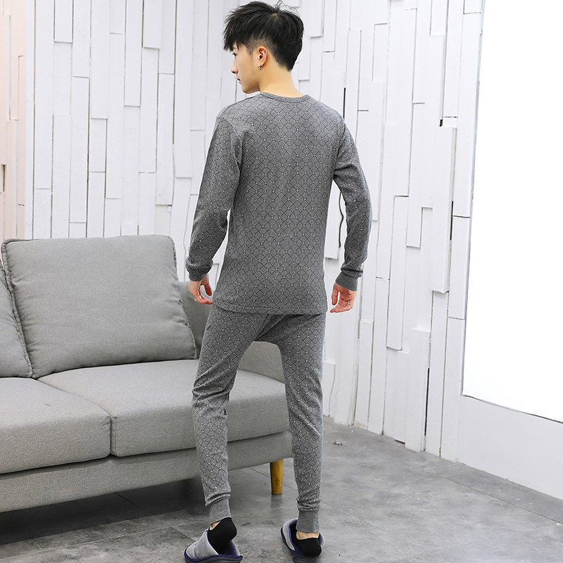 Winter men's bottoming shirt clothes a set of youth junior high school students wear pure cotton thin autumn clothes sanitary pants set