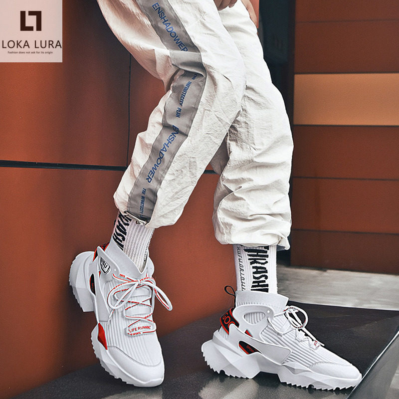 Tide-card Old Dad shoes Men's Chains Han version Trend 100 lapped 2021 Summer new breathable Fly-woven casual shoes thick bottom