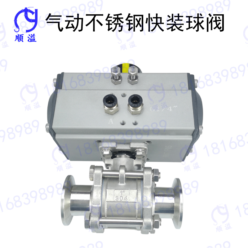 304 stainless steel three-piece pneumatic fast-mounted ball valve sanitary level hoop-type no-stay ball valve Q681F-16P
