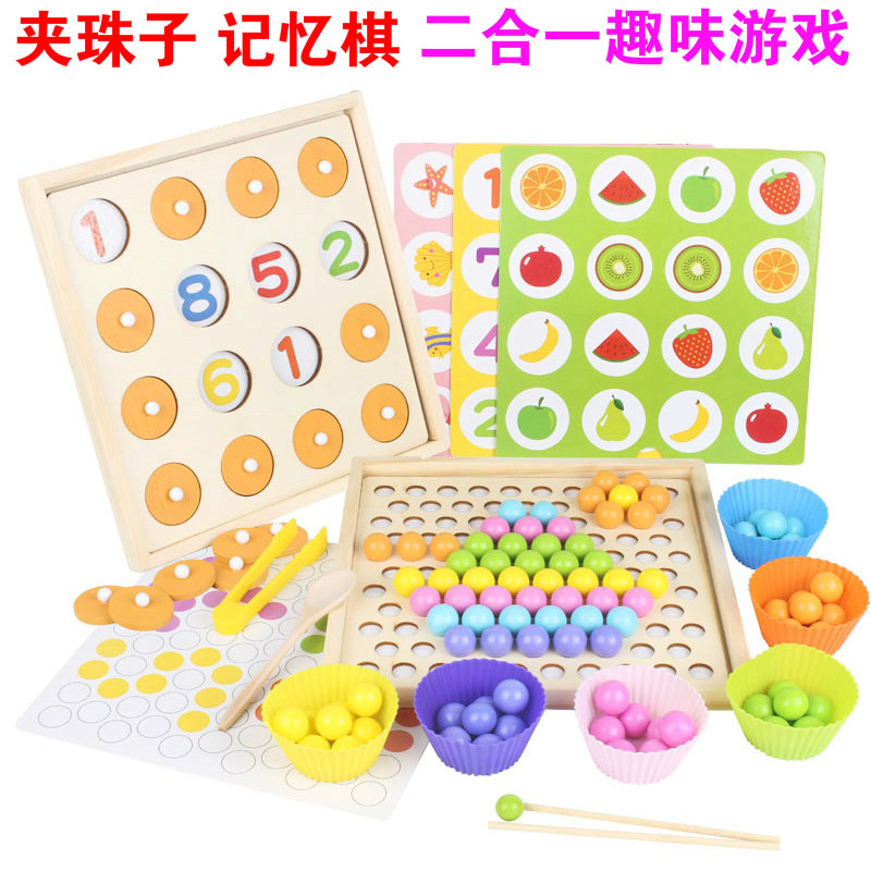 Children's concentration training toy clip beads baby learn chopsticks clip ball bean early education intelligence color puzzle