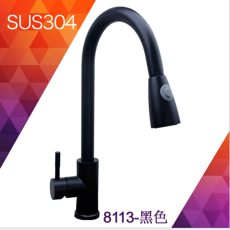 Kitchen tap hot and cold water 304 stainless steel can 360-degree swivel pull-out vegetable basin tap water nozzle telescopic-Taobao