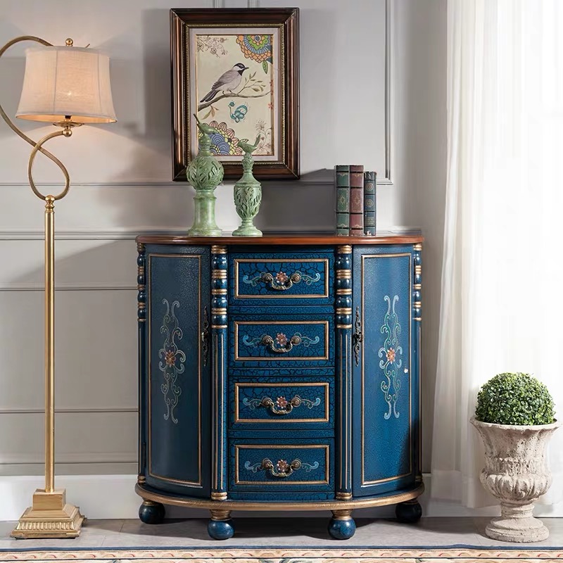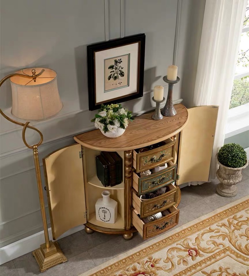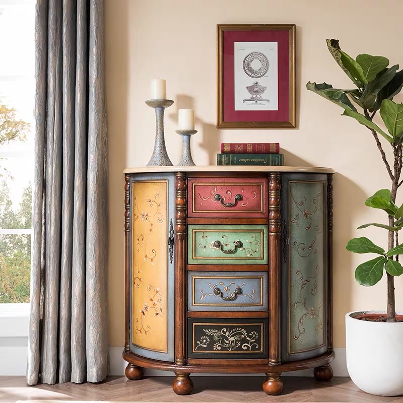American painted solid wood semi-circle Xuanguan table retro to make old wall corner decorating cabinet corridor cabinet multifunction small side cabinet