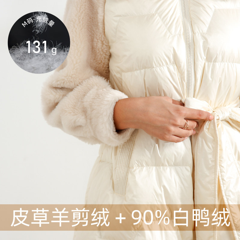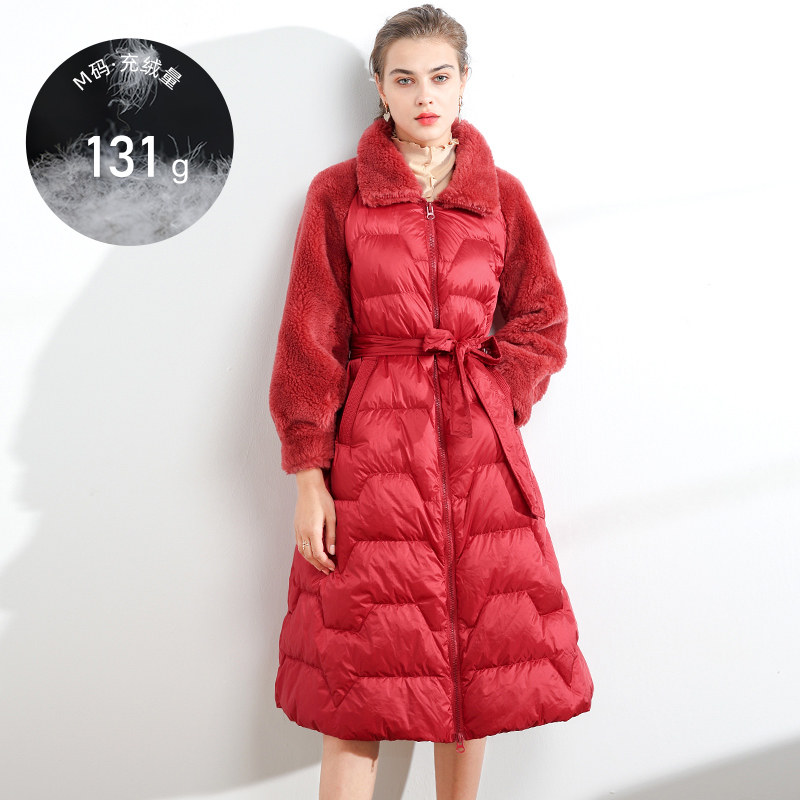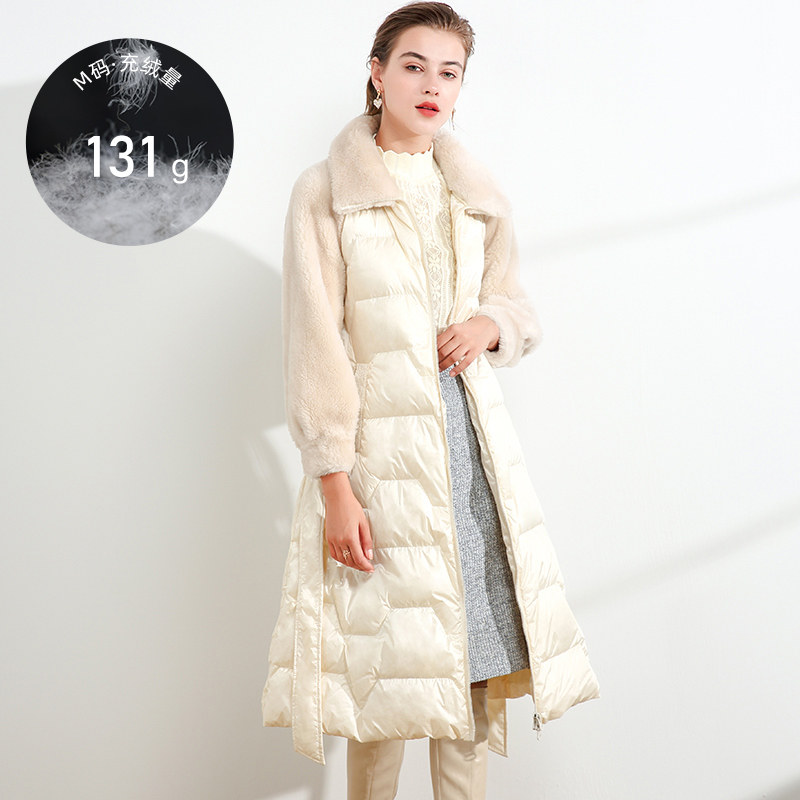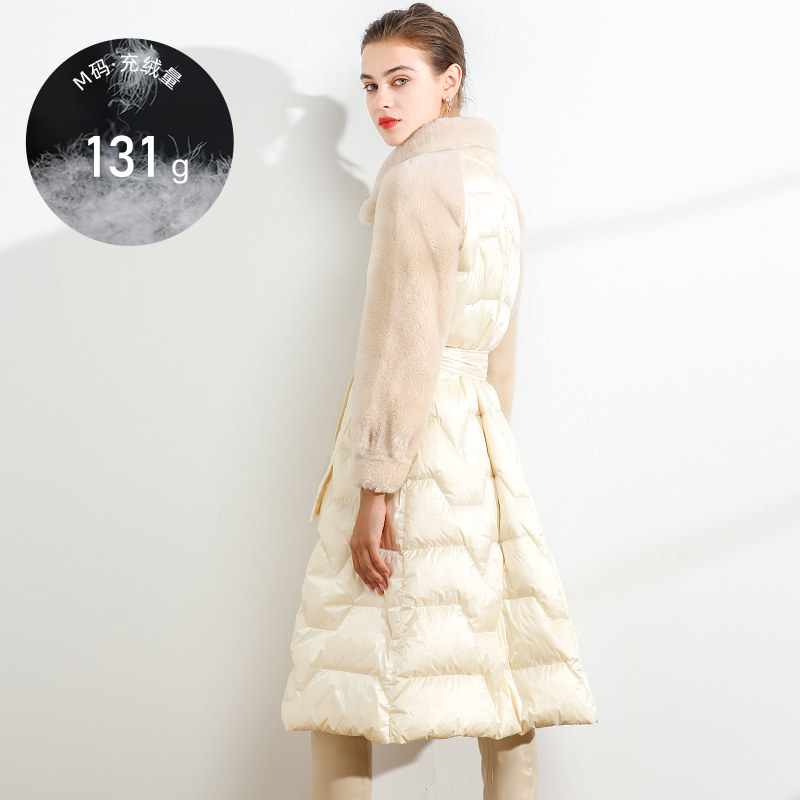 Thin and light down jacket women's middle school long version 2021 autumn and winter new knee-length slimming fur coat stitching sheep shear coat