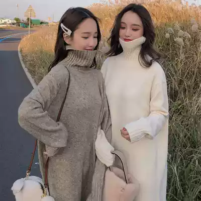 Autumn and winter clothes 2021 new fat sister casual with coat large size women's high collar thick Foreign style dress women
