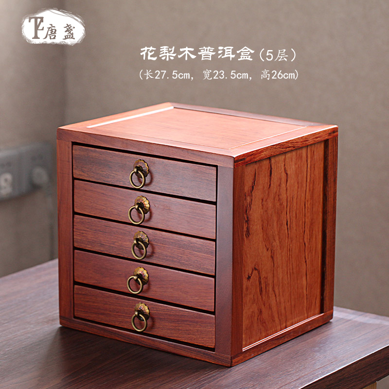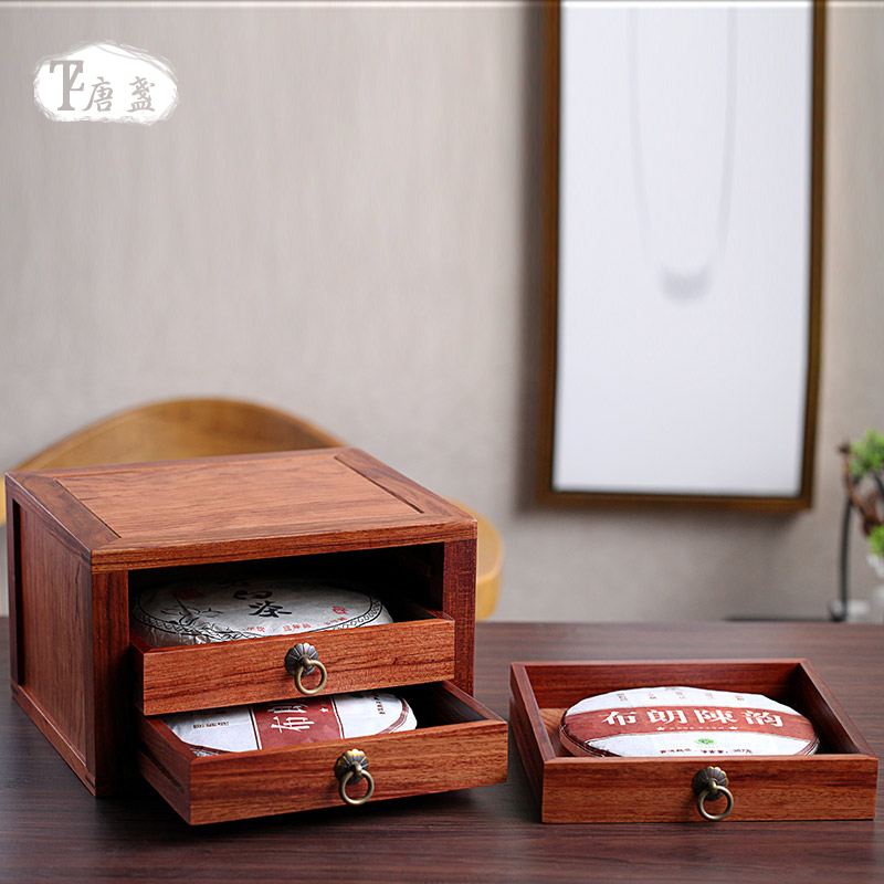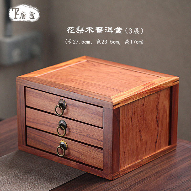 Dowa Flowers Pear Wood Solid Wood Puh Tea Box Multilayer Tea Cake Containing Box Cabinet Chinese Drawer Tea Leaf Tank Accessories-Taobao