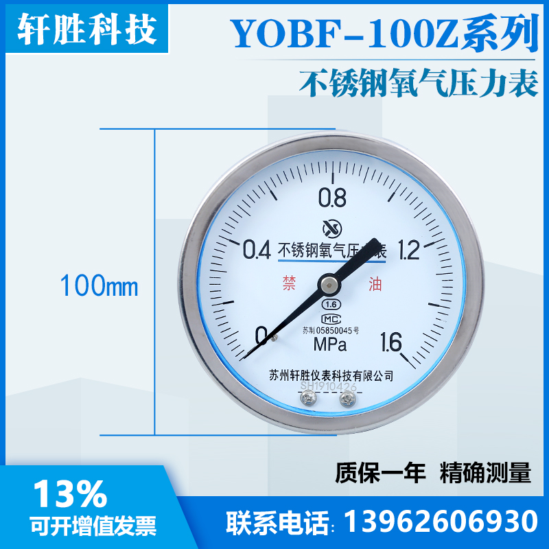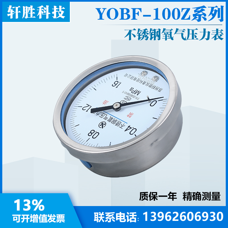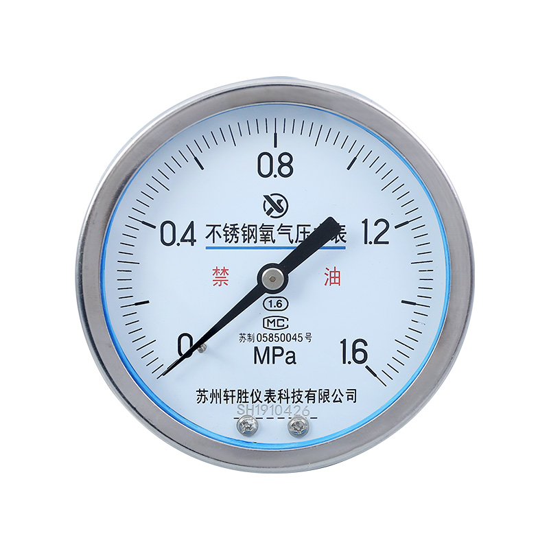 YOBF100Z axial stainless steel oxygen pressure meter high pure pipe oxygen pressure meter Suzhou Xuan