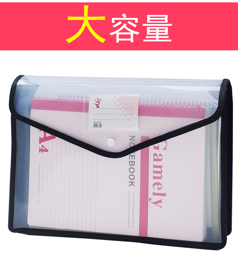 Color increase capacity transparent button file bag student A4 press button storage file information bag plastic bag