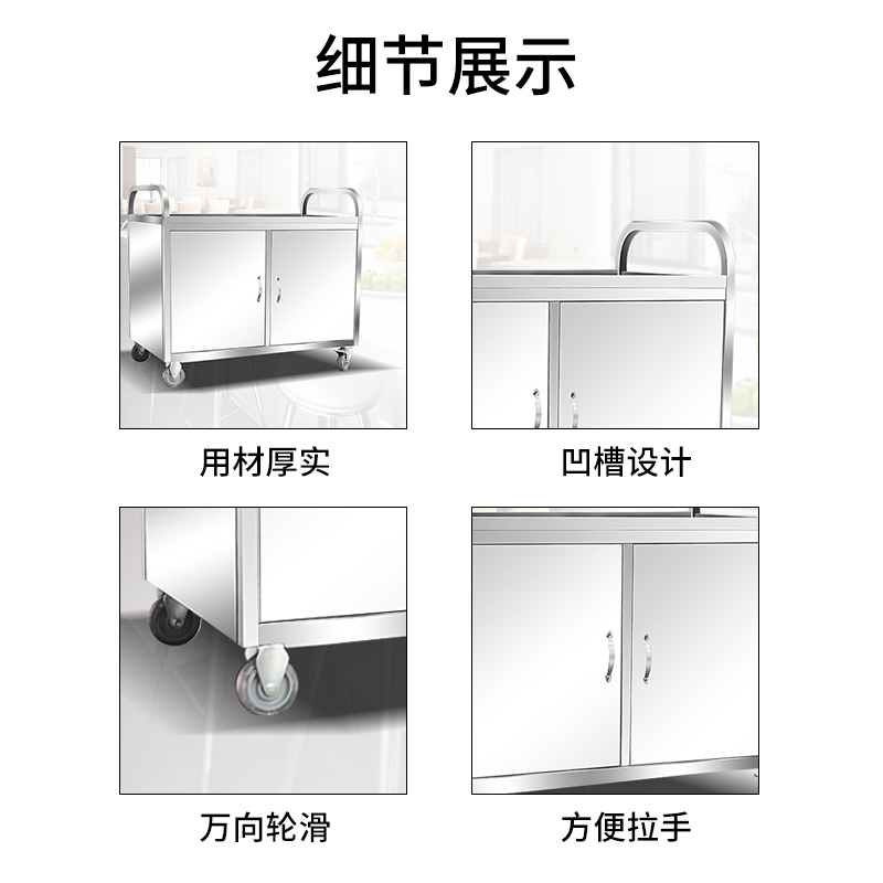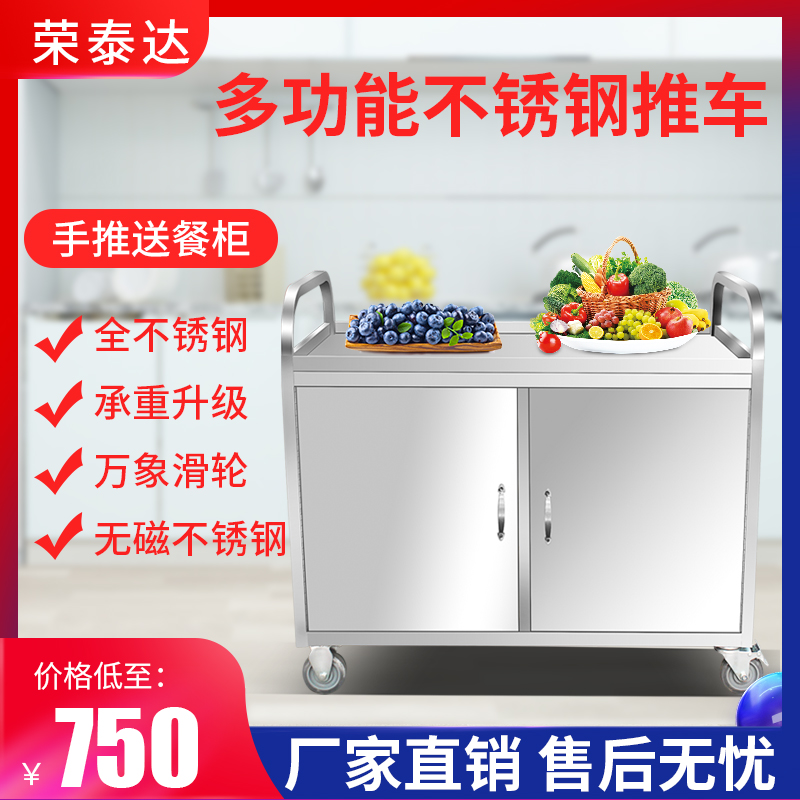 Stainless Steel Hand Push Dining Car With Door Closed Hotel Canteen Kindergarten Delivery Mobile Breakfast Takeaway Cart