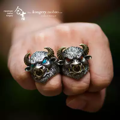 Cangji handmade S925 silver ring bull head men and women opening personalized fashion index finger ring domineering carving