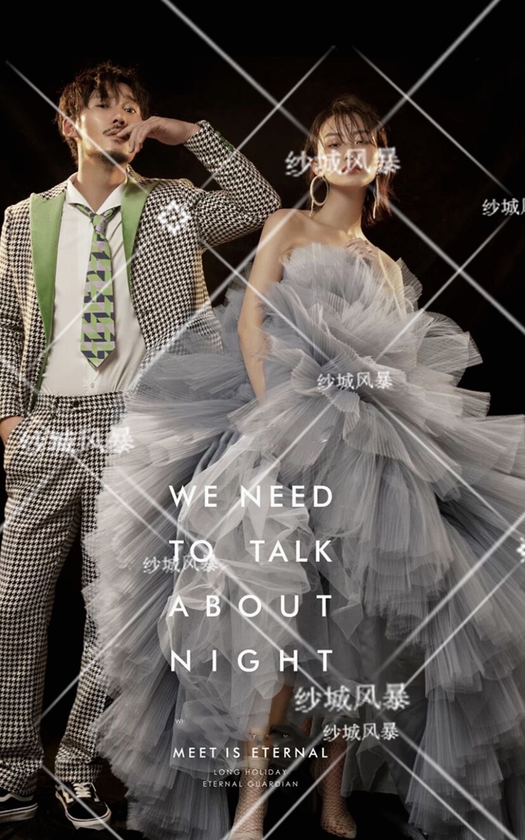Exhibition new photo studio theme wedding couple photo cake skirt clothing gray tube top fluffy skirt dress