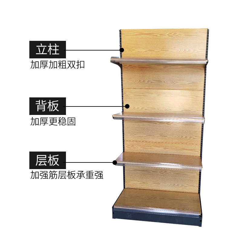 Convenience store supermarket shelf Display shelf Store snack shelf Multi-layer single-sided double-sided wood grain shelf storage shelf