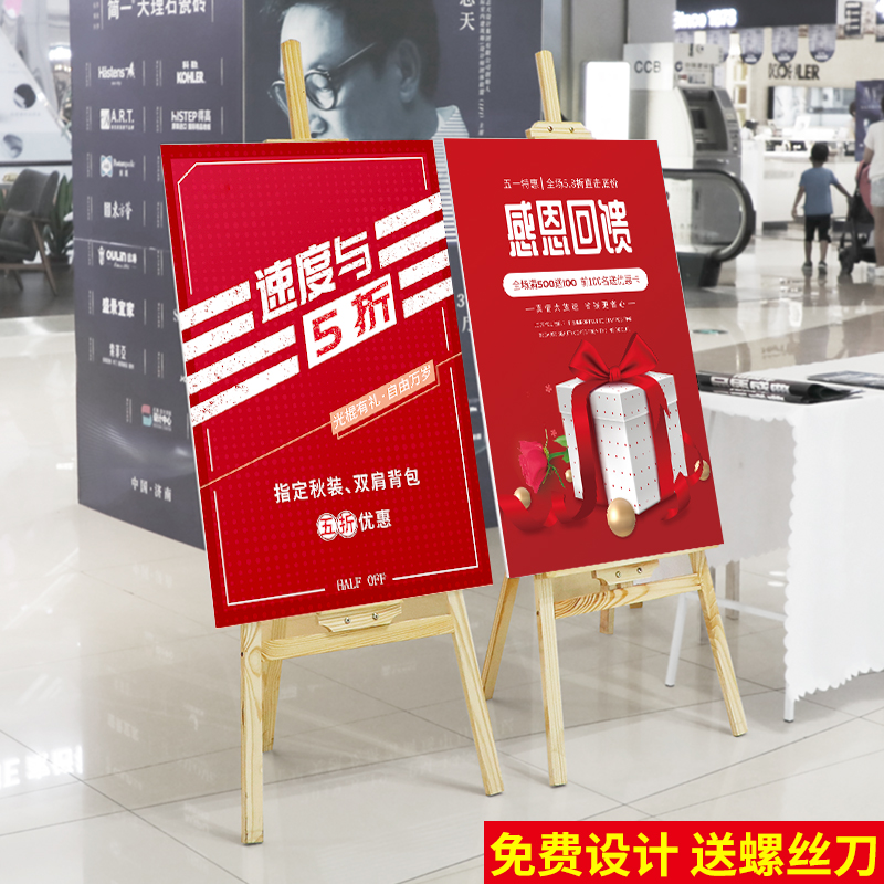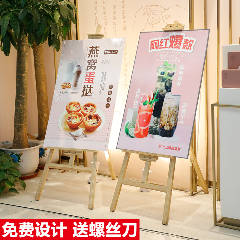 Wooden display frame kt board bracket vertical floor-standing billboard display board welcome poster frame water sign display shelf