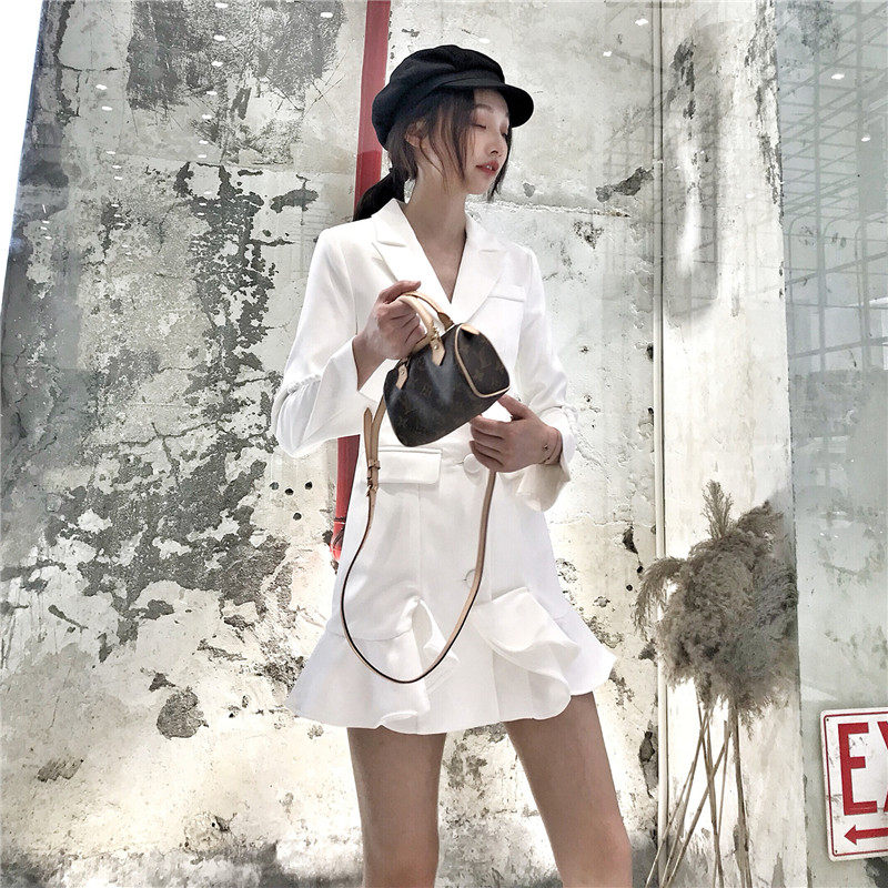 Autumn new long-sleeved European and American style suit collar short flared sleeve ruffle pleated suit dress children's coat