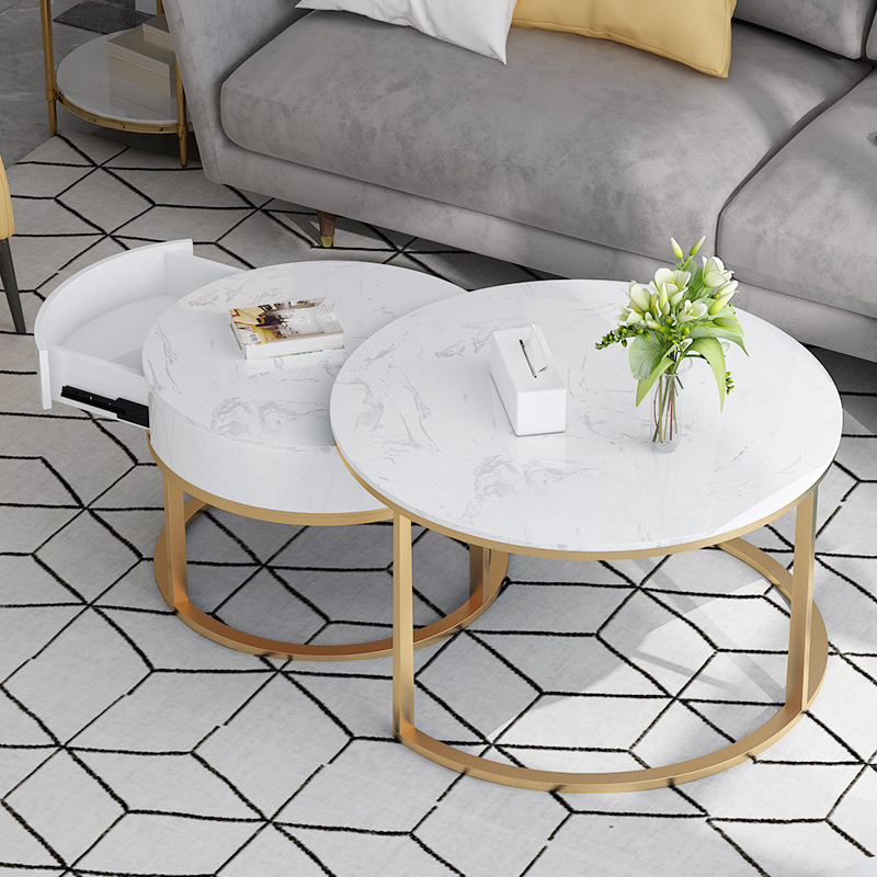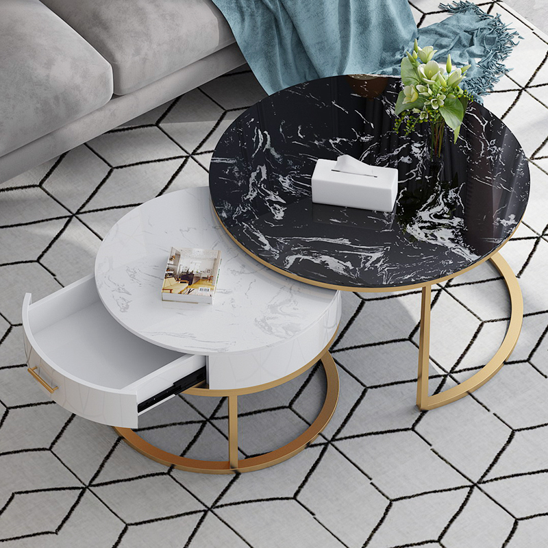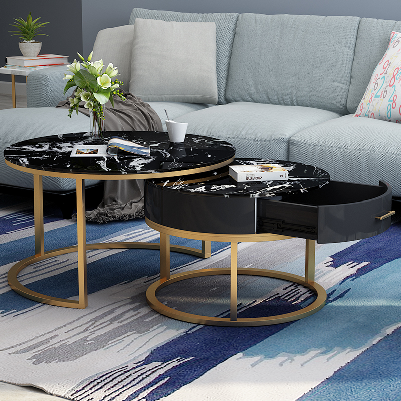 Nordic Tea Table Minimalist Modern Small House Type Iron Art Marble Round Living Room Light Lavish Size Tea Table Combinations