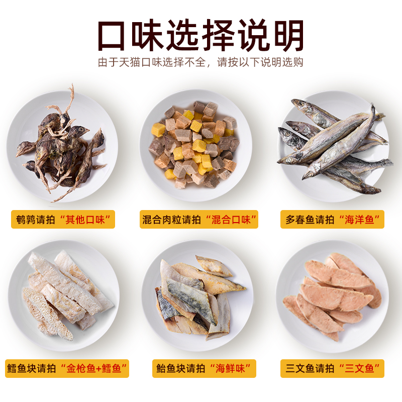 Salmon 3 pack --(45g) Cattle 3 pack --(60 grams) Cod 3 pack --(30 grams) Chicken 3 pack --(60 grams) mixed cutting