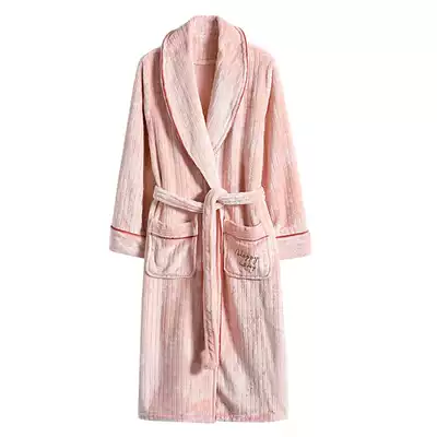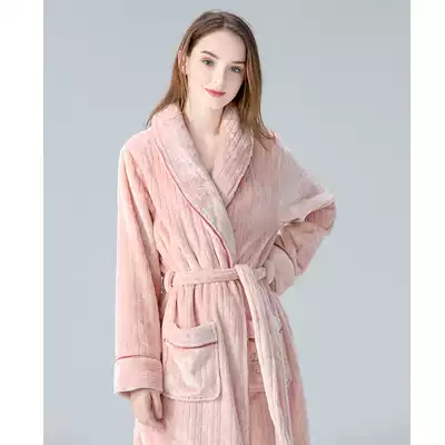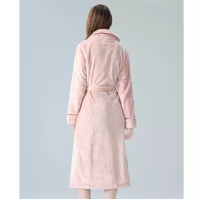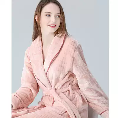 IIZZINI original robe women winter long sleeve coral velvet pajamas with cotton padded padded pink lace bathrobe