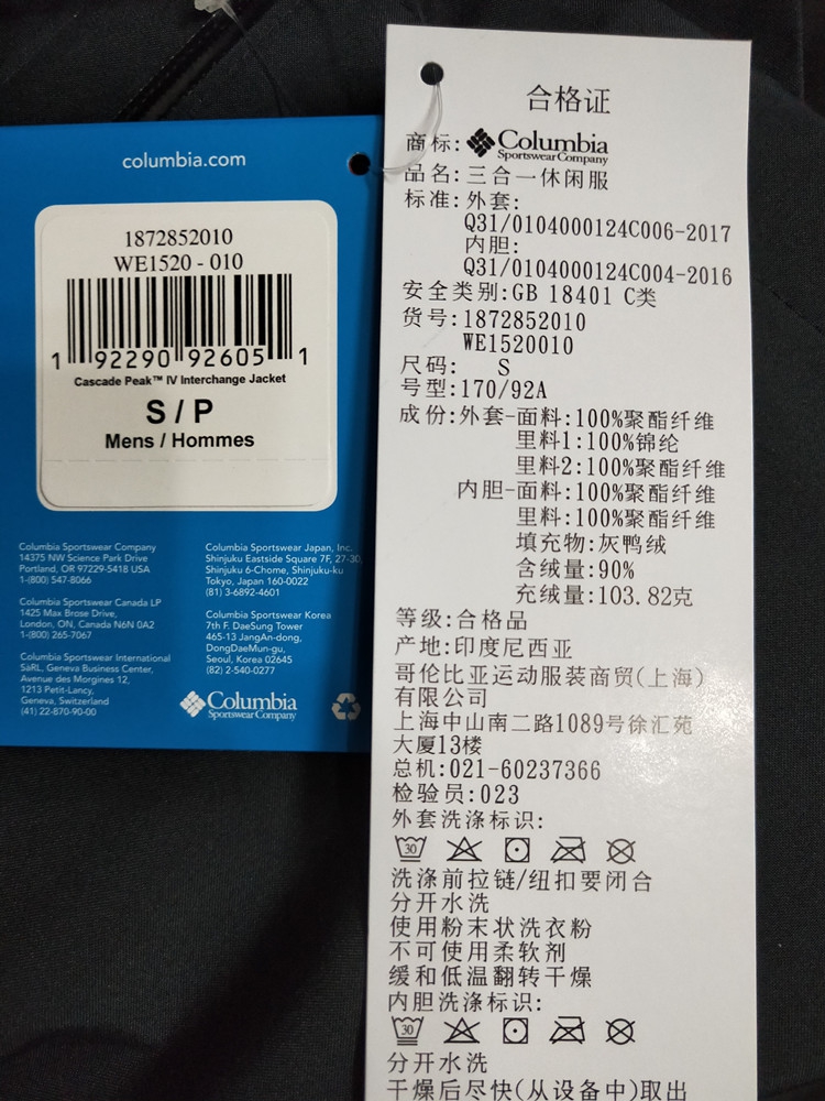2020 Winter-style Columbia men's heat water waterproof 700 fluffy down Neri three-in-one submachine clothes WE1520