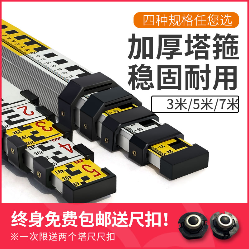 Level tower ruler 5 meters 7 meters 3 meters telescopic ruler scale ruler 5m aluminum alloy thickened tower ruler measurement tree tall car