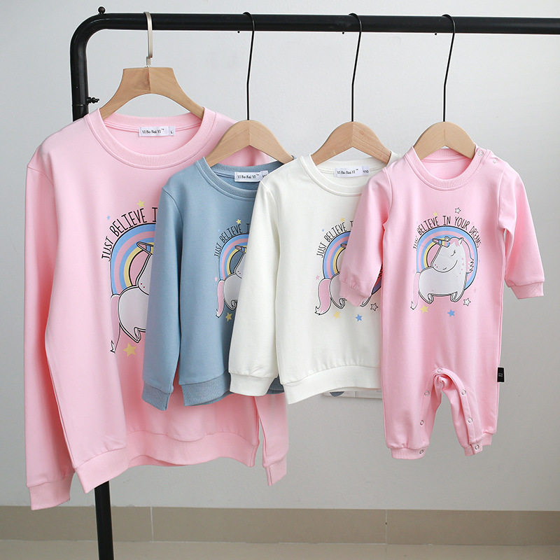 Online Red pro-children clothing a family of three, four-mouthed, autumn-loaded babies with a mother and mother women's clothing and clothing for spring and autumn