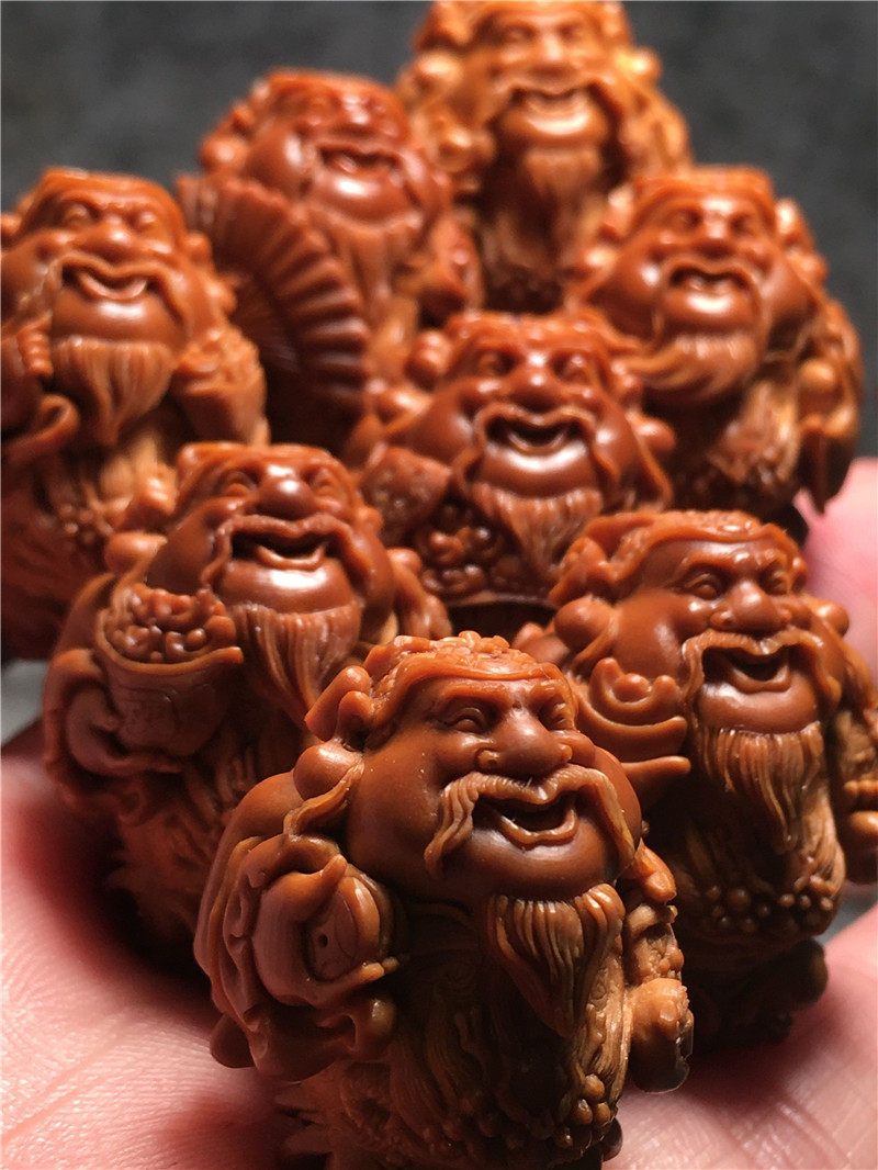 Su-worked famous female master of the work The Eight Treasure Gods 2 3 Pure Artisanal Olive Nuclear Carvings of the Divine Hand Strings