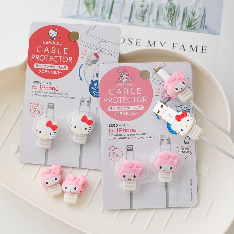 Japan hello Kitty mobile phone data cable anti-break silicone protective sleeve cute charging wire bite wire