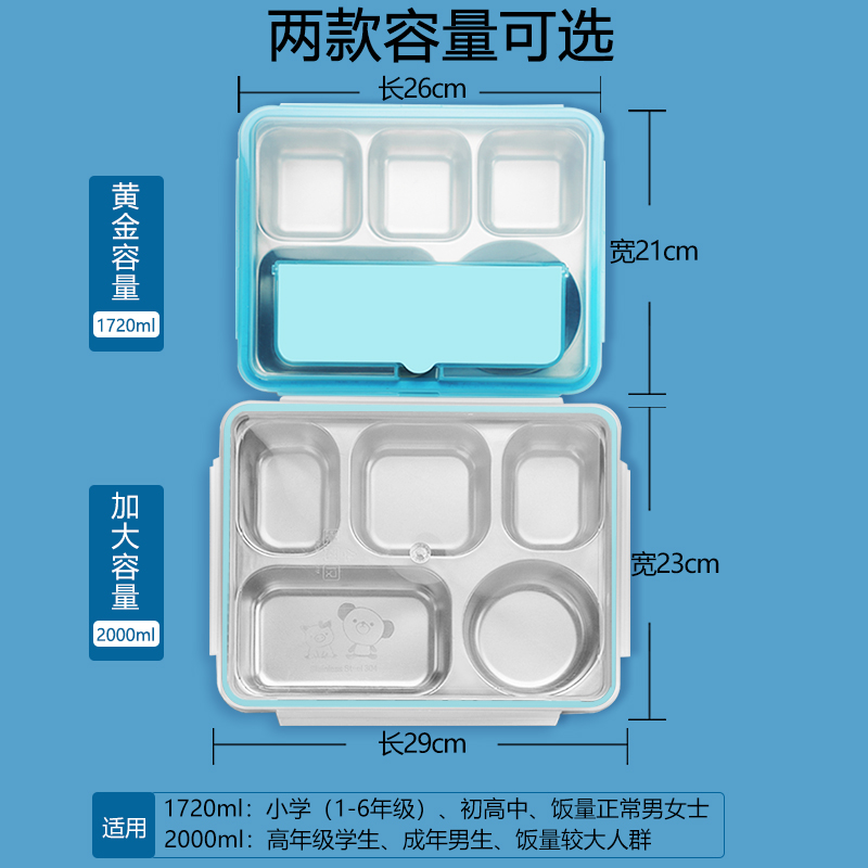 Large five-grid blue transparent 2000ml large five-grid blue transparent 2000ml bag large five-grid blue transparent 2000ml cutlery bag big five-grid blue transparent 2000ml bowl