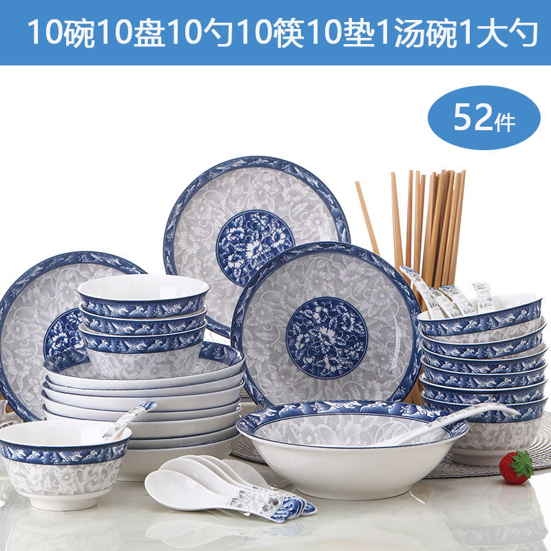 Dish suit Jingdezhen Home Qinghua Porcelain Creative Soup Bowl with Bubbling Noodles Bowl tray Dish Bowls Chopsticks Cutlery Cutlery Cutlery