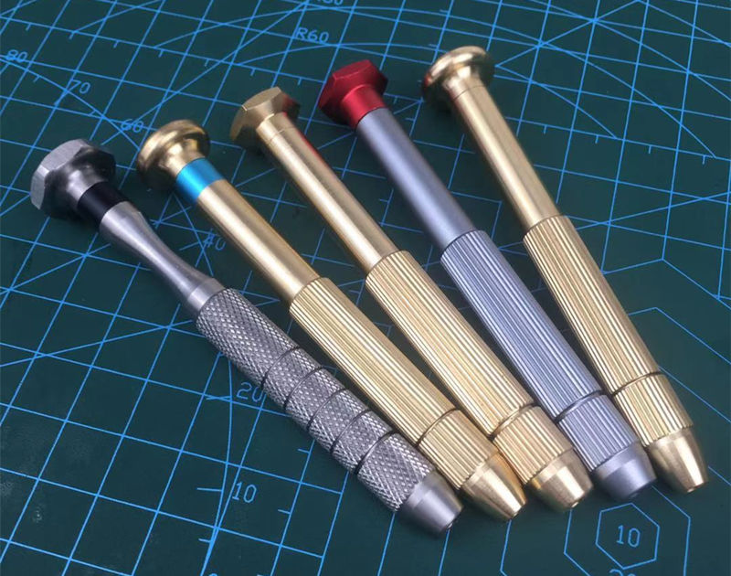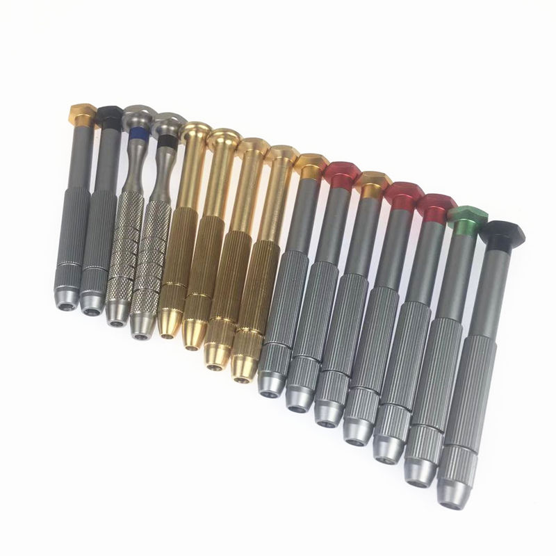 Hexagon tail with color ---- aluminum handle round tail with color ----- bronze handle round tail color ------ copper handle hexagon tail with color-stainless steel handle 6