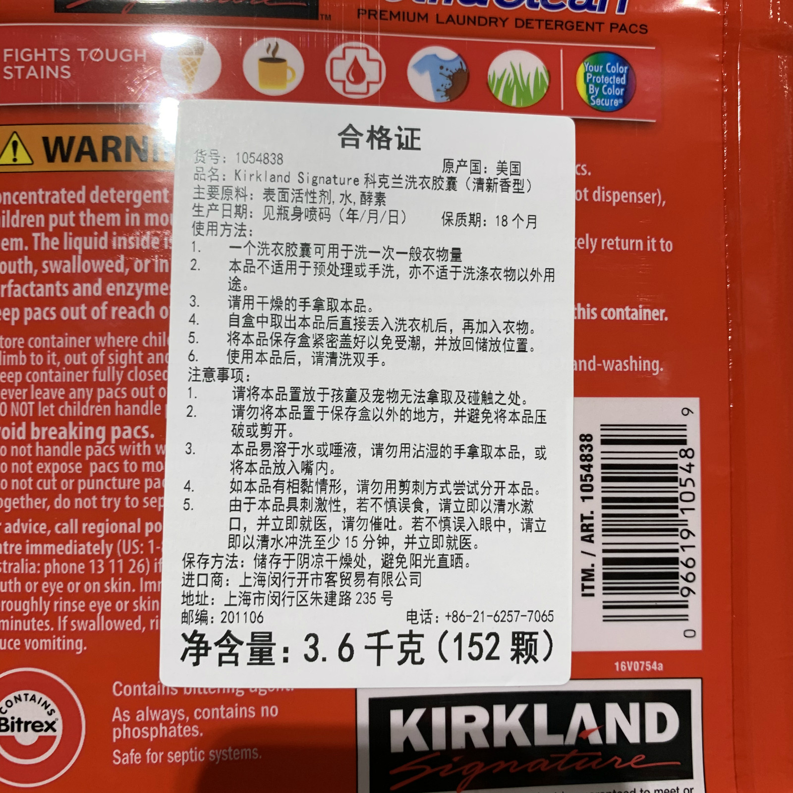 Shanghai costco Coklan laundry clots 152 fresh and fragrant capsules 3 6kg bottled concentrated laundry balls
