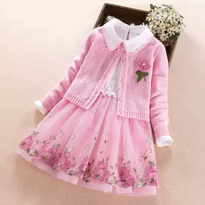 Girls 2021 autumn new suit dress spring and autumn Western style long-sleeved children's girl princess skirt two-piece set
