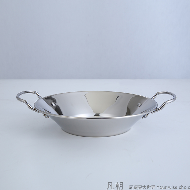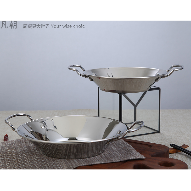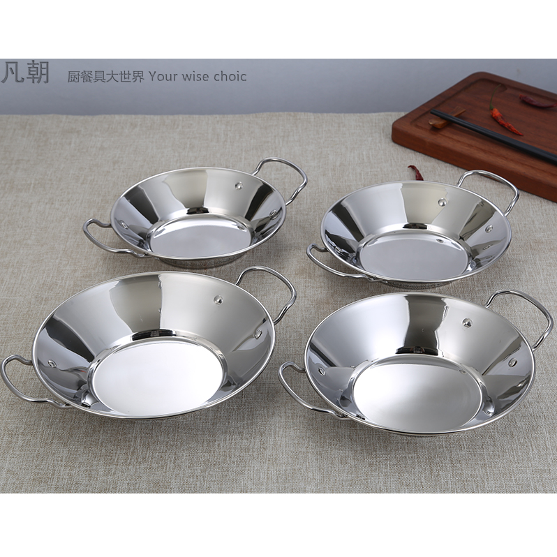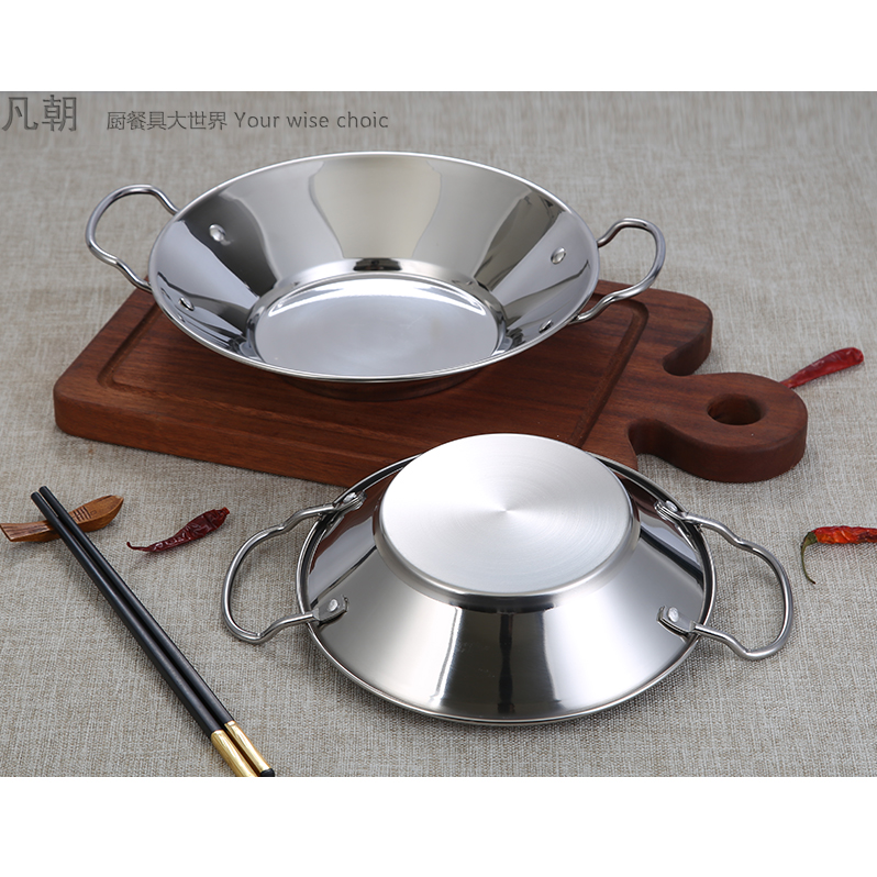 Stainless Steel Dry Pan Seafood Pan Double Ear Cool Vegetable Basin Fruit Tray Flat Bottom Small Pan Frying Pan Rice Hall Small Lobster Seafood Electric Pan