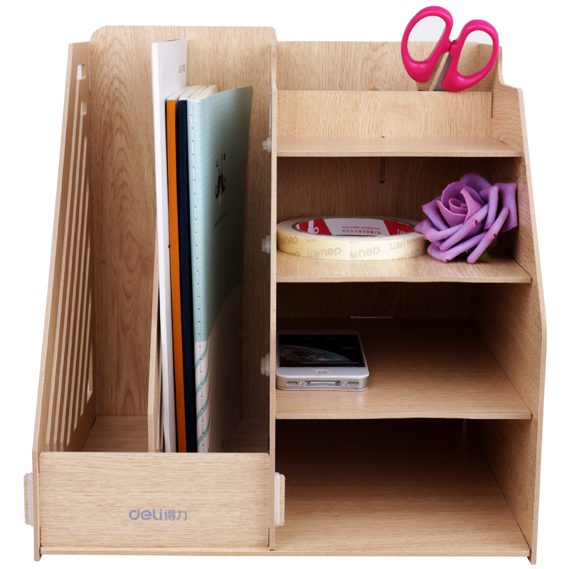 deli 9842 wooden file basket file frame storage box combination multi-function file rack