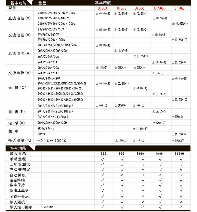 Uliid UT58B large screen digital multimeter high precision handheld universal table multifunction universal meter UT58A