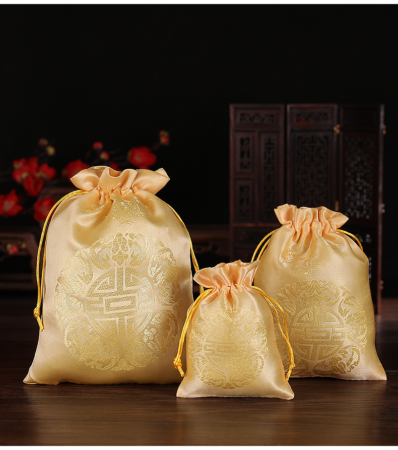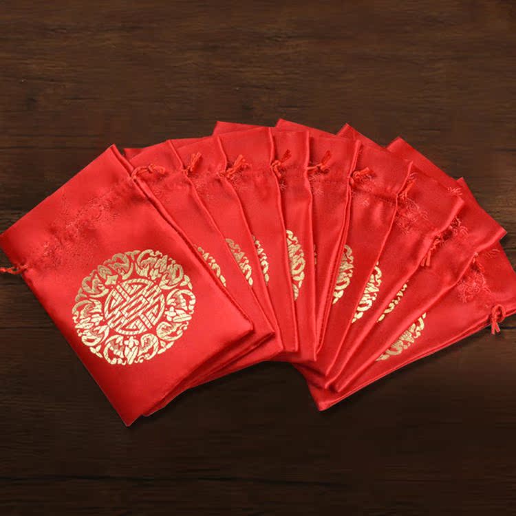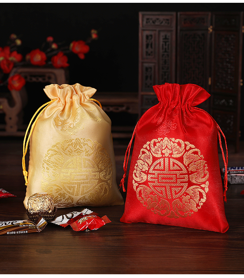 Wedding sweet box wedding celebration bag Chinese fan satin sweet egg bag red rope sweet bag