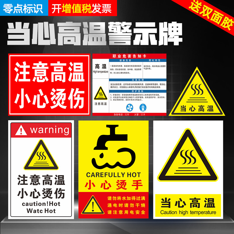 Careful with burns, Careful burns signs Signs Signs Note high burns Workshop Plant Drawing room Watch for high temperature, warn signs