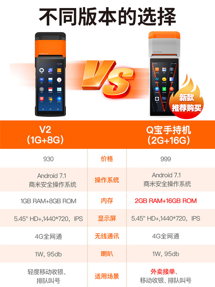 SUNMI business rice Q treasure handheld takeaway order V2 automatic order order artifact V1s printing mobile cashier food order scanning code ordering single body system small portable Pro cash register