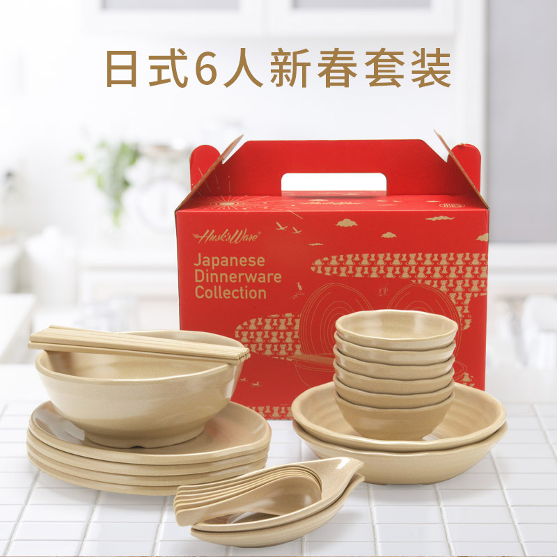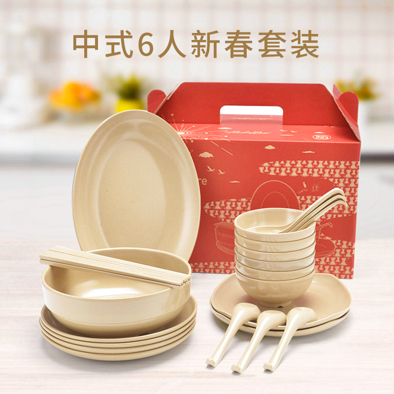 Shell's only Chinese 4-person 6-person set Bowl chopsticks plate soup spoon gift box tableware set Household combination