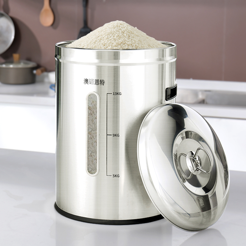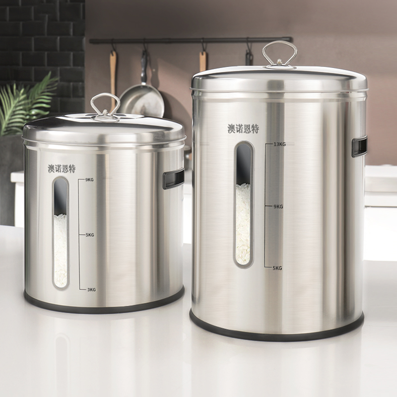 304 stainless steel rice bucket household insect-proof and moisture-proof 20-50 kg 30 packs of food-grade rice cylinder sealed thickened rice storage box