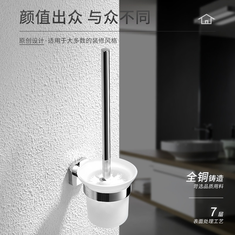Toilet Brush Holder All Copper Wall-mounted Hotel Apartment Makeup Room Toilet Brushed Cup Rack Suit Three Sets Frosted Glass Cups