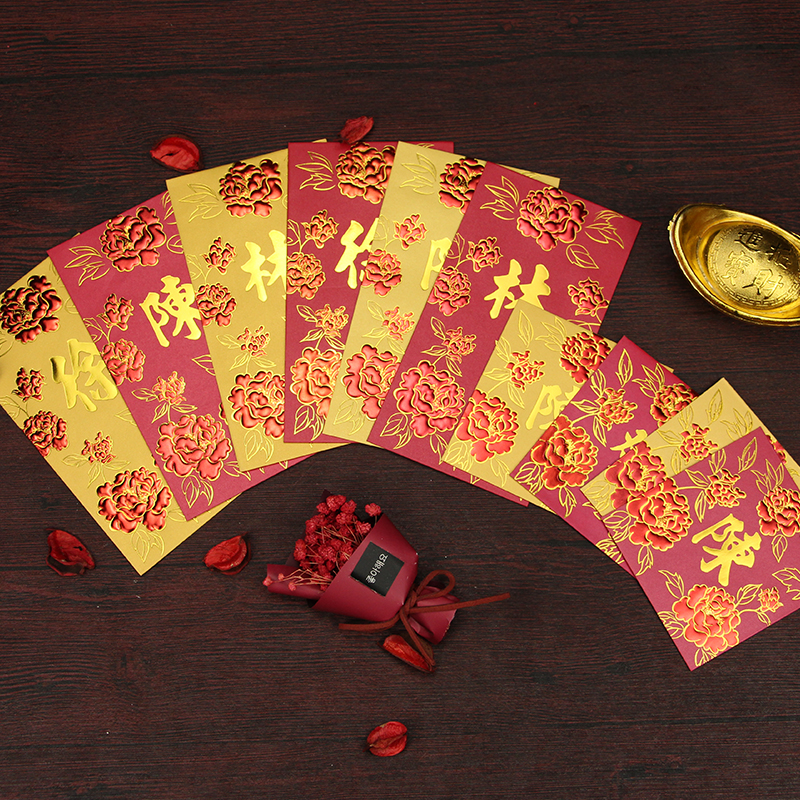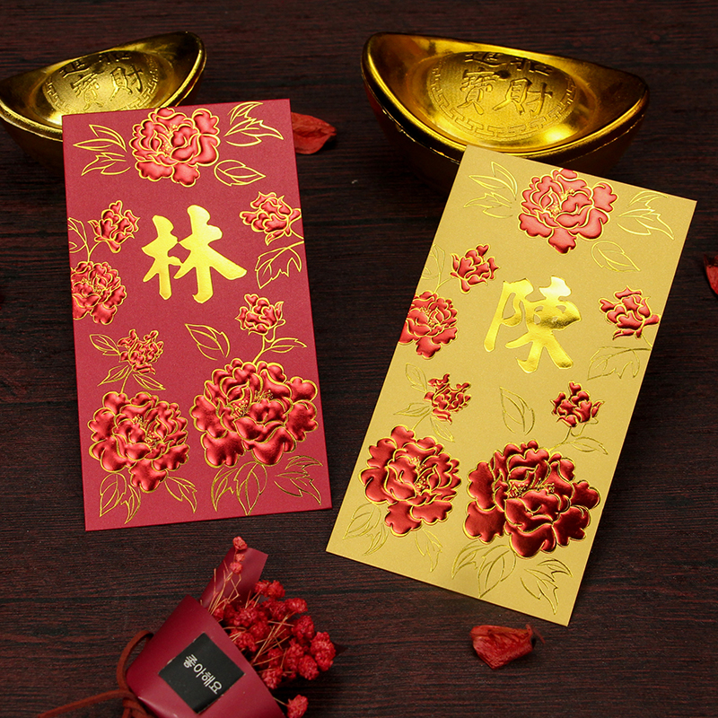 Hong Kong's hundreds of people surnamed li is a seal peony classic extravagant and creative design bronzed golden red tan Yingfu surname red packet custom-Taobao