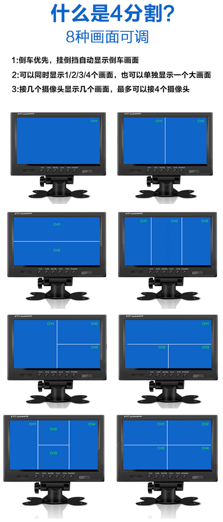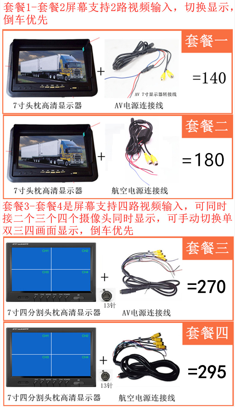 One (7-inch headrest two-way display AV) two (7-inch headrest two-way display aviation) (7 inches high please inlay 2-way one-mother) three (7-inch headrest 4-way display AV13 pin)