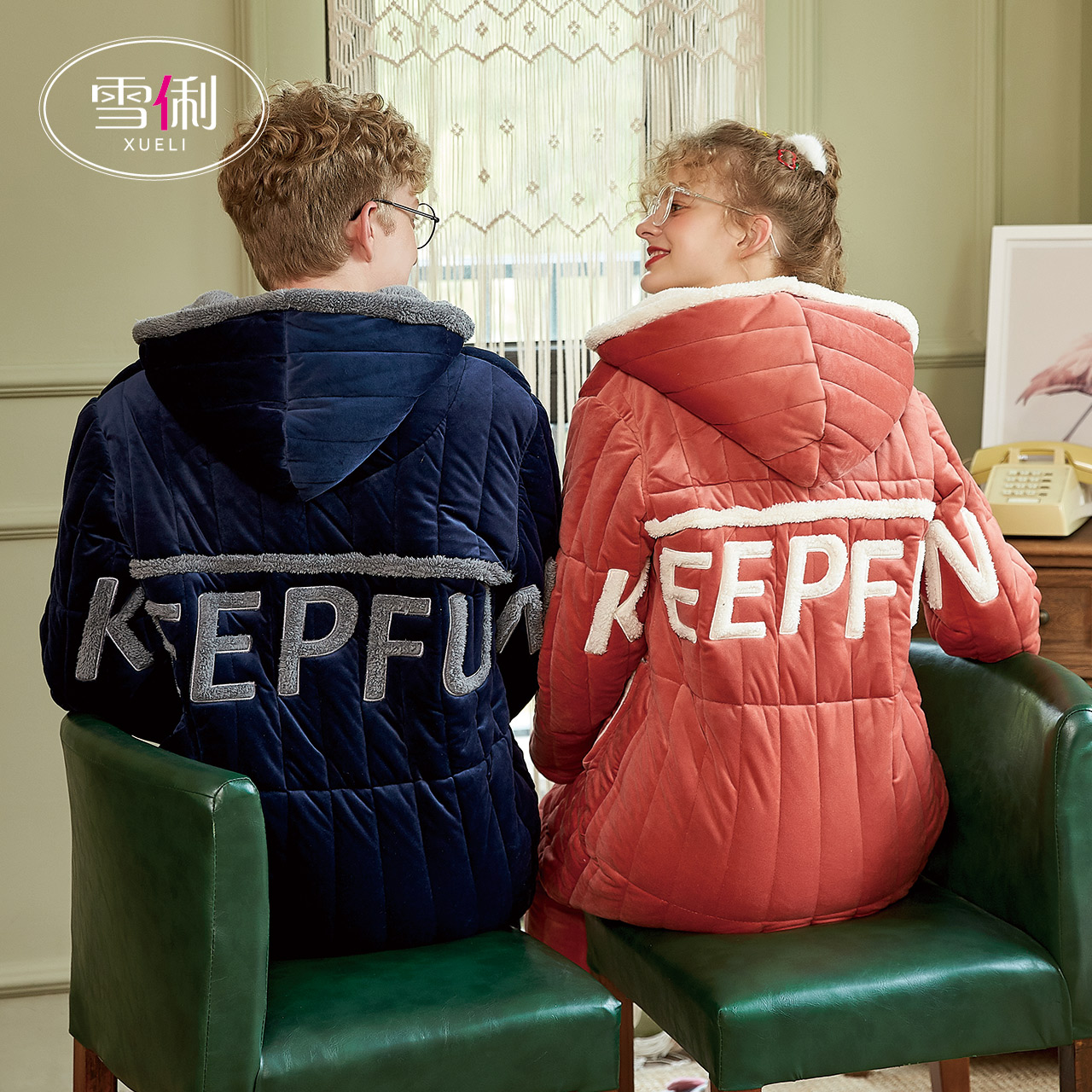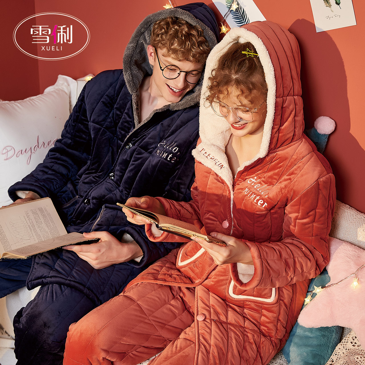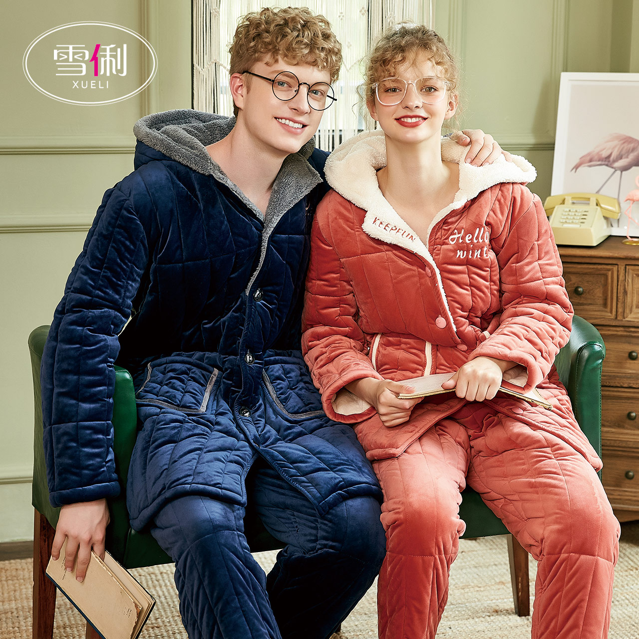 Snow coral fleece paddle pajamas women winter plus plus thick warm couple home wear flannel men's set