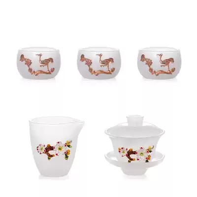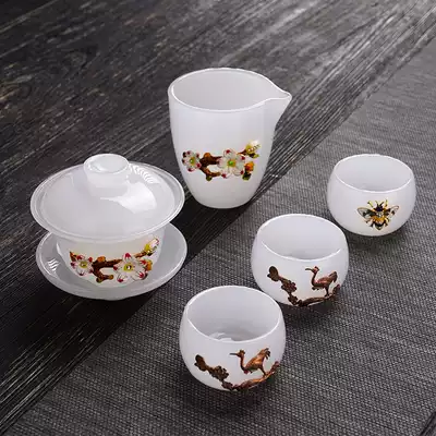 Sheep jade porcelain tea set set home simple tea bowl tea cup enamel silver set kung fu tea set