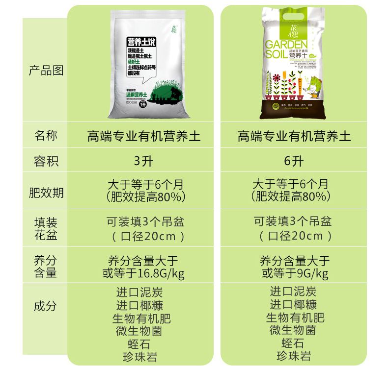 3 litres of nutritious earth for 6 liters of nutritional soil
