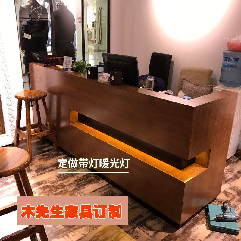 Company reception desk beauty health retro cash register counter simple modern clothing hotel solid wood bar