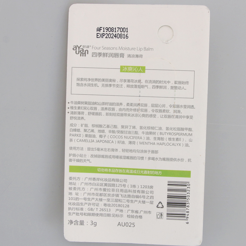 Good for the Four Seasons Fresh Lip Balm cool mint Moisturizing Moisturizing Lip Care Anti-Dry Cleft Lip Oil